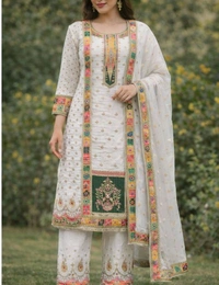 Designer white suit set 🤍✨ Fully embroidered dupatta + matching pants 💫”