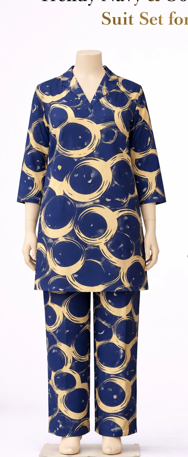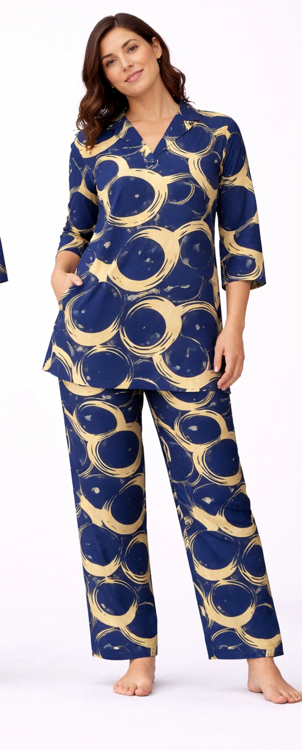 Trendy Navy Blue Abstract Printed Night Suit Set for Women